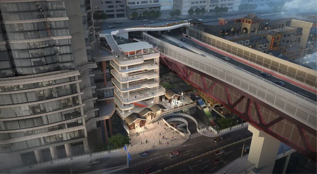 缓解景区拥堵,实现“快疏散”。项目直接衔接洪崖洞四层平台,并配套了旋转车道作为车库出口。这不仅能有效分散观景人流,更能大幅提升景区车库车辆疏散到嘉滨路的效率,对缓解长期以来节假日周边的交通拥堵,将起到立竿见影的效果。