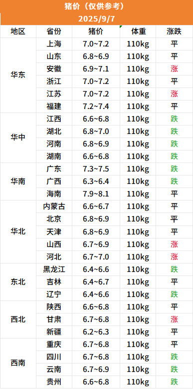 今日猪价北方稳中涨跌调整,南方下跌幅度加大,东北地区稳中小幅调整,标猪主流报价在6块4到6块7左右,今日河南一哥出栏价格表现稳定,大小体重无价差,在14.34元左右。广东大场两天跌了8毛一公斤,昨天一公斤跌4毛,今天又4毛,挂牌价格来到15元/公斤。散户今日稳定为主,小幅偏弱。现在形势明朗,猪价上涨难度大。关注我带你了解最新的猪价行情。